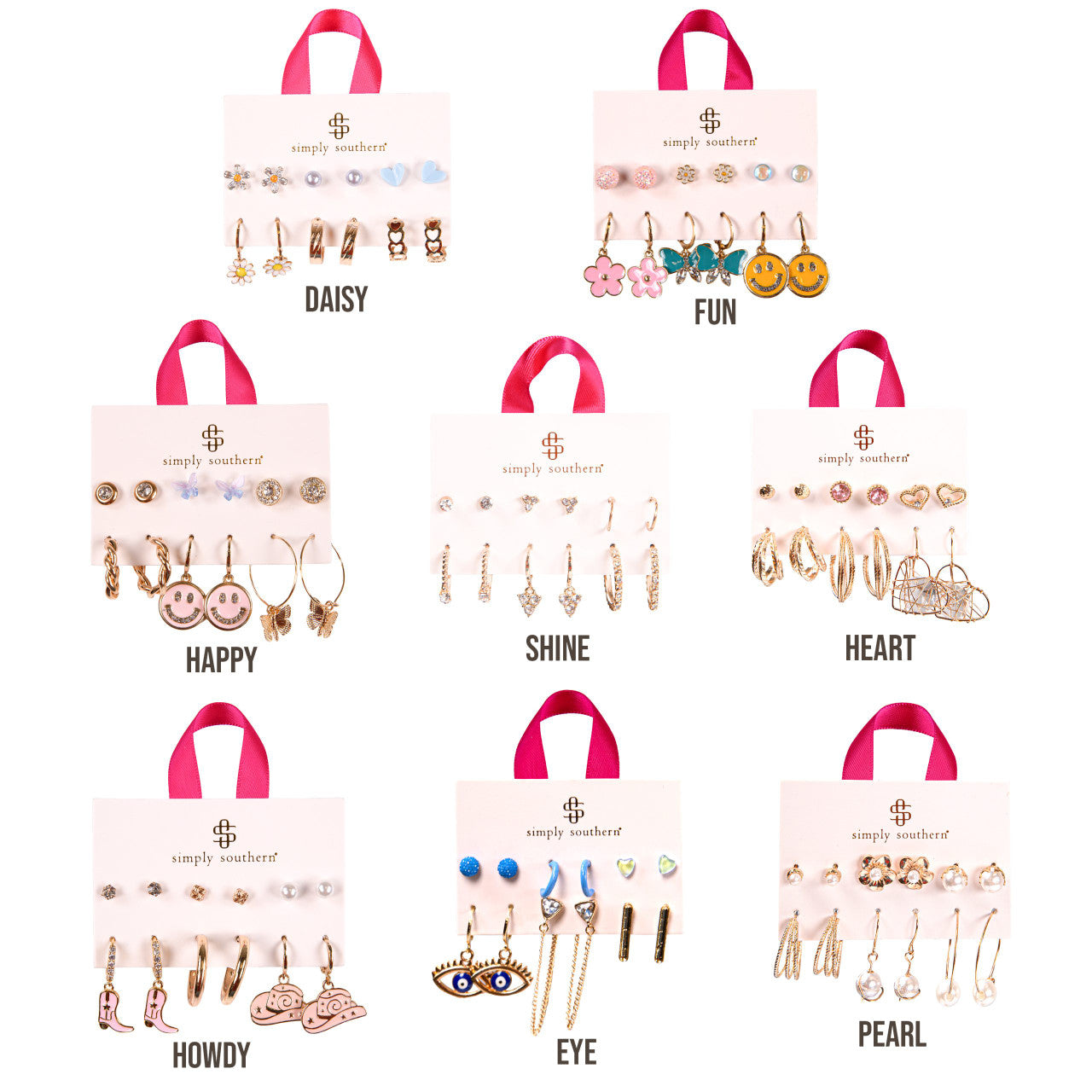 | Add that extra accent to your outfit with these dangle earring sets.Includes a variety of studs and dangle/hoop designs. Made of plated gold. |