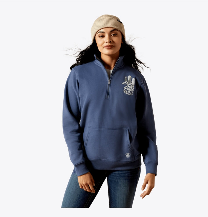 WOMENS QUARRY HALF ZIP SWEATSHIRT IN VINTAGE INDIGO