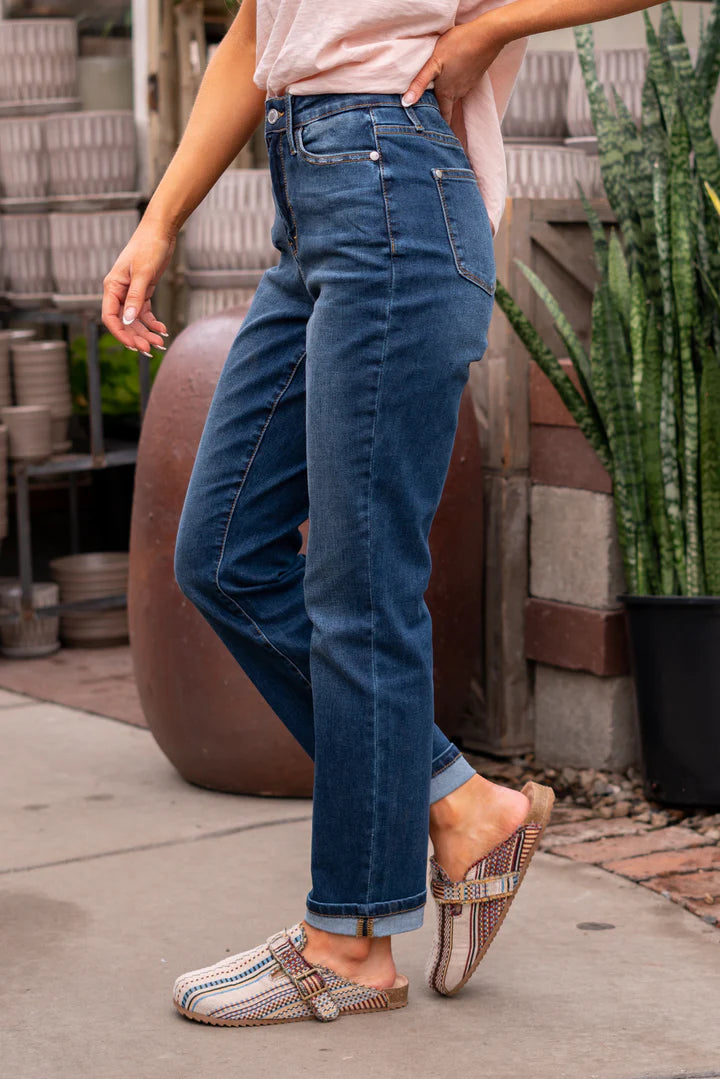 These jeans have a high-rise fit, which means they sit at the waist and provide good coverage and support. The boyfriend style of these jeans is relaxed and slightly slouchy, giving them a laid-back and casual vibe. Whether dressed up or down, these jeans are sure to make a statement and add personality to your outfit.