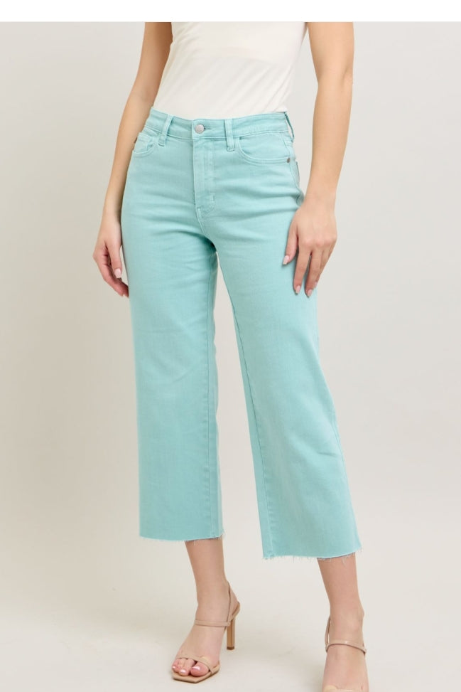 - HW Garment Dyed Raw Hem Crop Wide - LT BLUE SKY