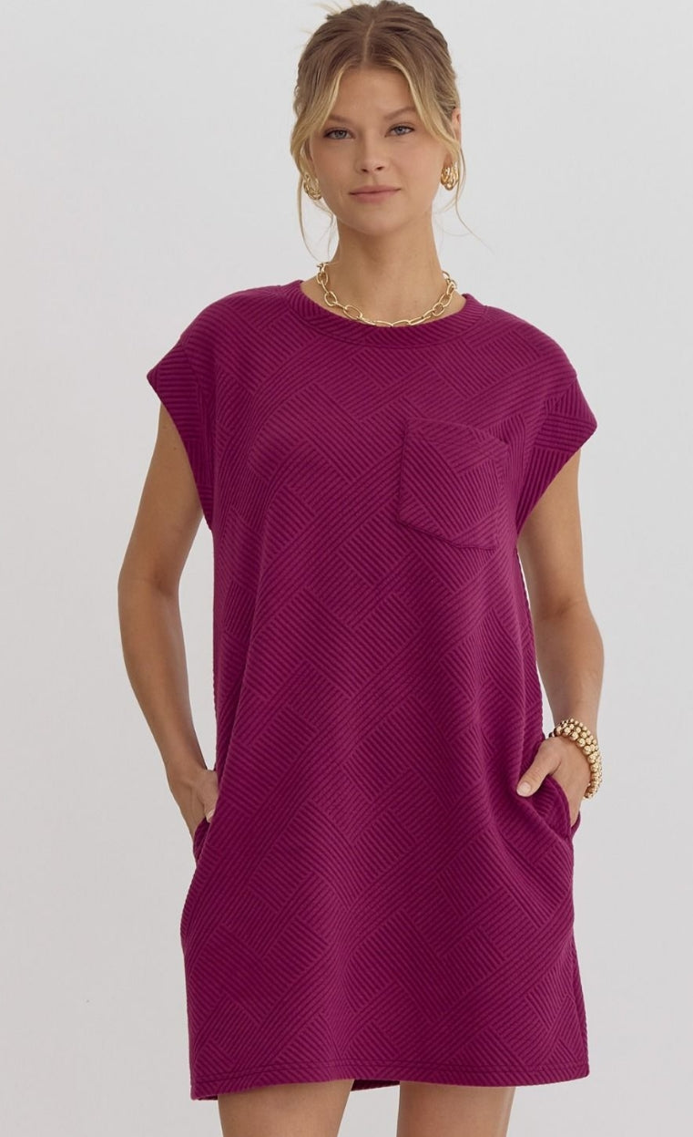 Expertly crafted D22390 dress boasts a textured round neck and sleeveless design, with handy pockets at the bust and sides. Unlined and made from knit fabric, this lightweight dress offers unbeatable style and comfort. A perfect addition to any wardrobe.