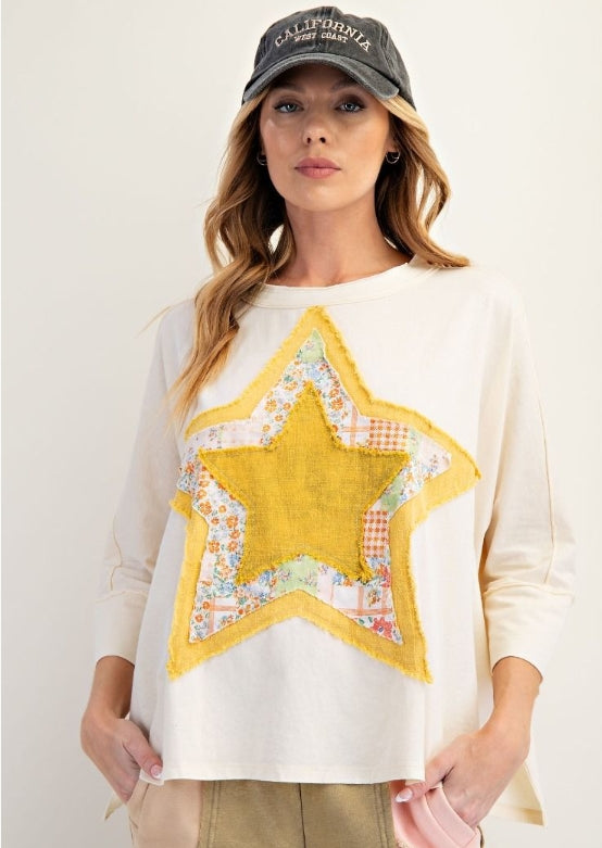 WASHED COTTON SLUB STAR PATCH FRONT TOP