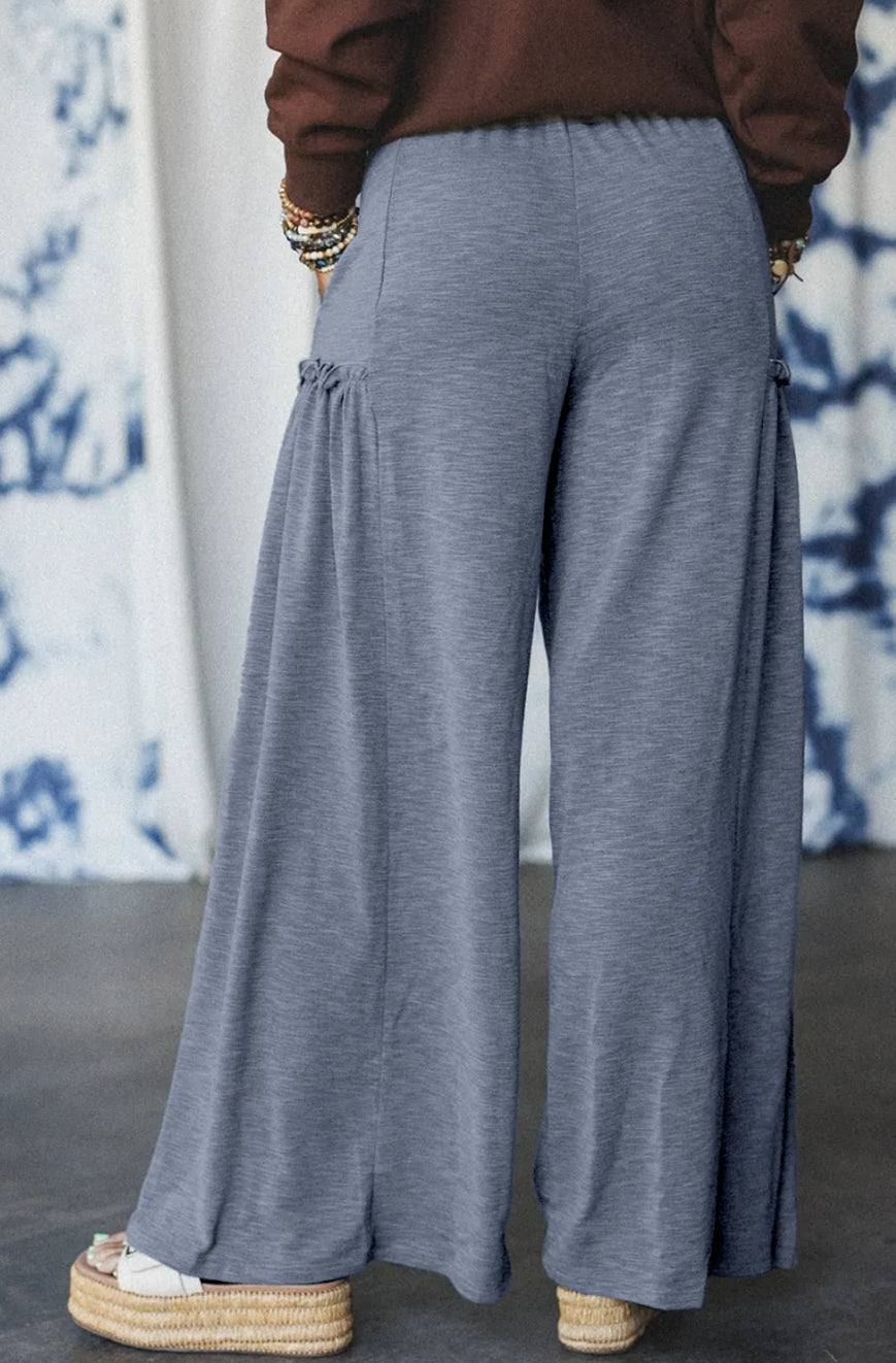 Frilled Detail Wide Leg Drawstring Elastic Waistband Pants