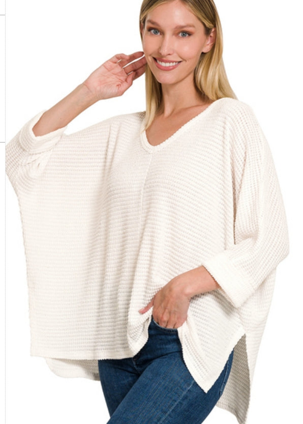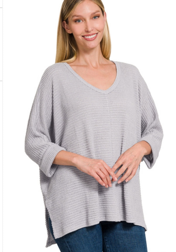 3/4 SLEEVE V-NECK JACQUARD SWEATER