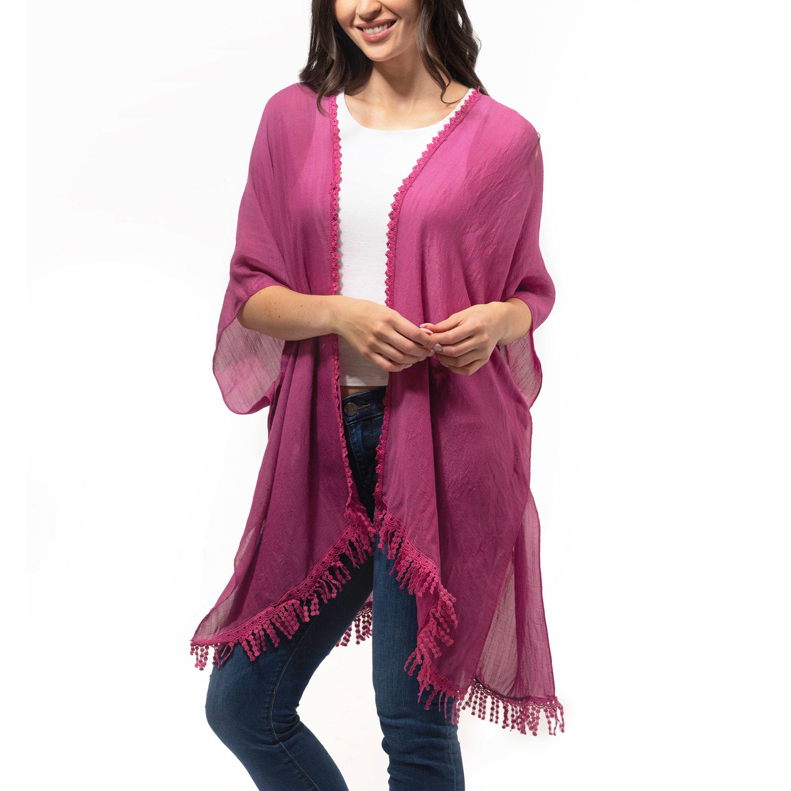 Beautifully woven style for every day and every destination. With a gorgeous peek-a-boo lace back and unique lotus flower fringe, what’s not to love about this vacation-ready wrap for street or swim.