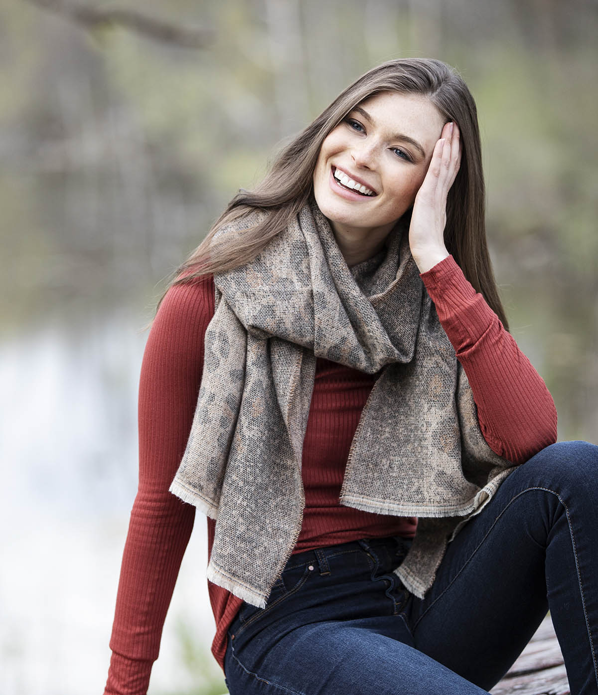 Perfectly oversized and incredibly soft, this subtly patterned scarf is designed for trendy style and true comfort. Wear as a scarf, wrap or throw for cuddle-worthy warmth any day of the year.