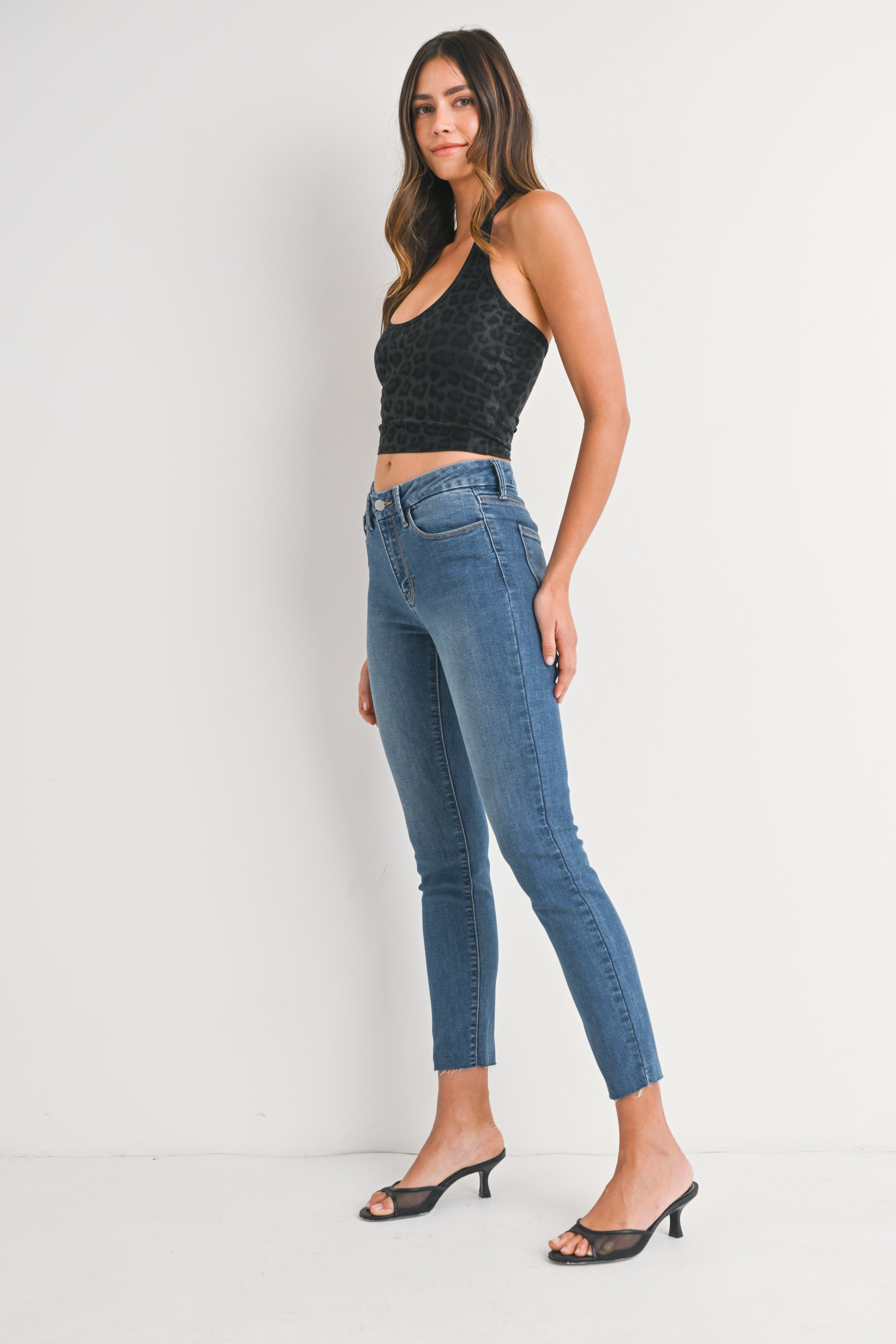 SUPER STRETCHY MID RISE SKINNY IN MEDIUM DENIM FOR PETITES!