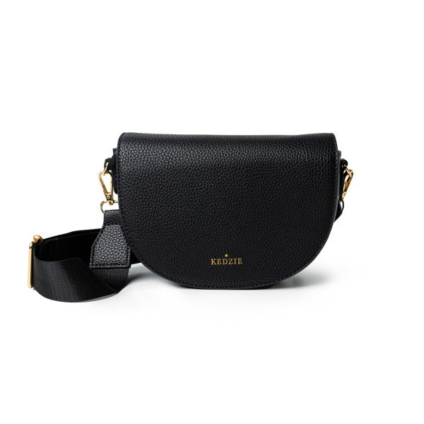 Good style is never just a phase! Brighten up your look with a bold half-moon silhouette in pebbled vegan leather. This messenger-style crossbody has a back slip pocket, spacious main compartment and a fold over magnetic snap closure to securely store all your essentials