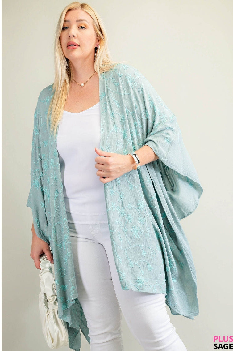 SOFT TEXTURE EMBROIDERED FABRIC RELAX CARDIGAN