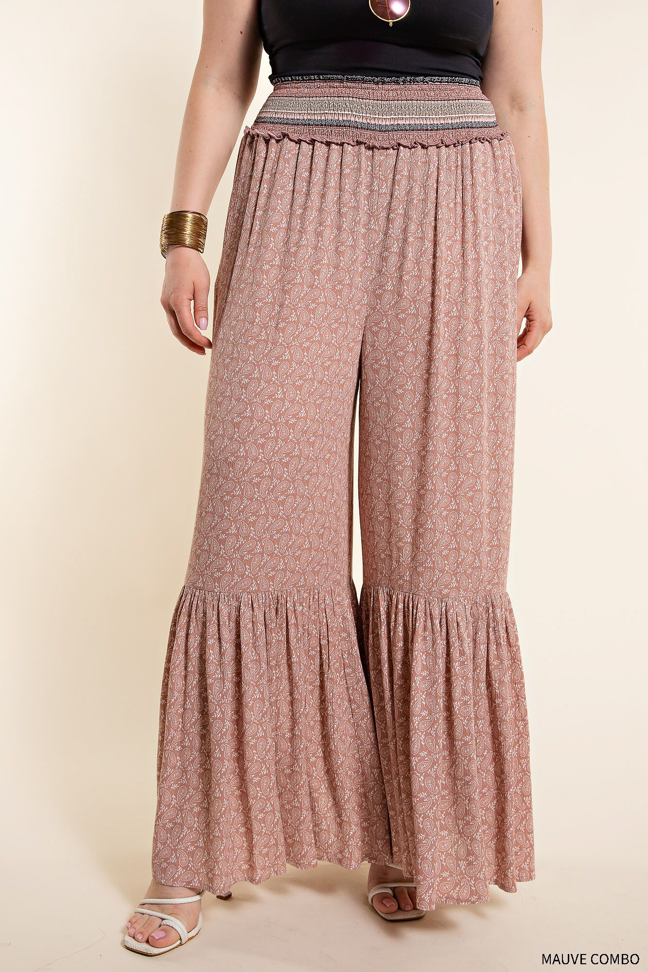 WIDE LONG PANTS WAIST SMOCKING AND SIDE POCKET