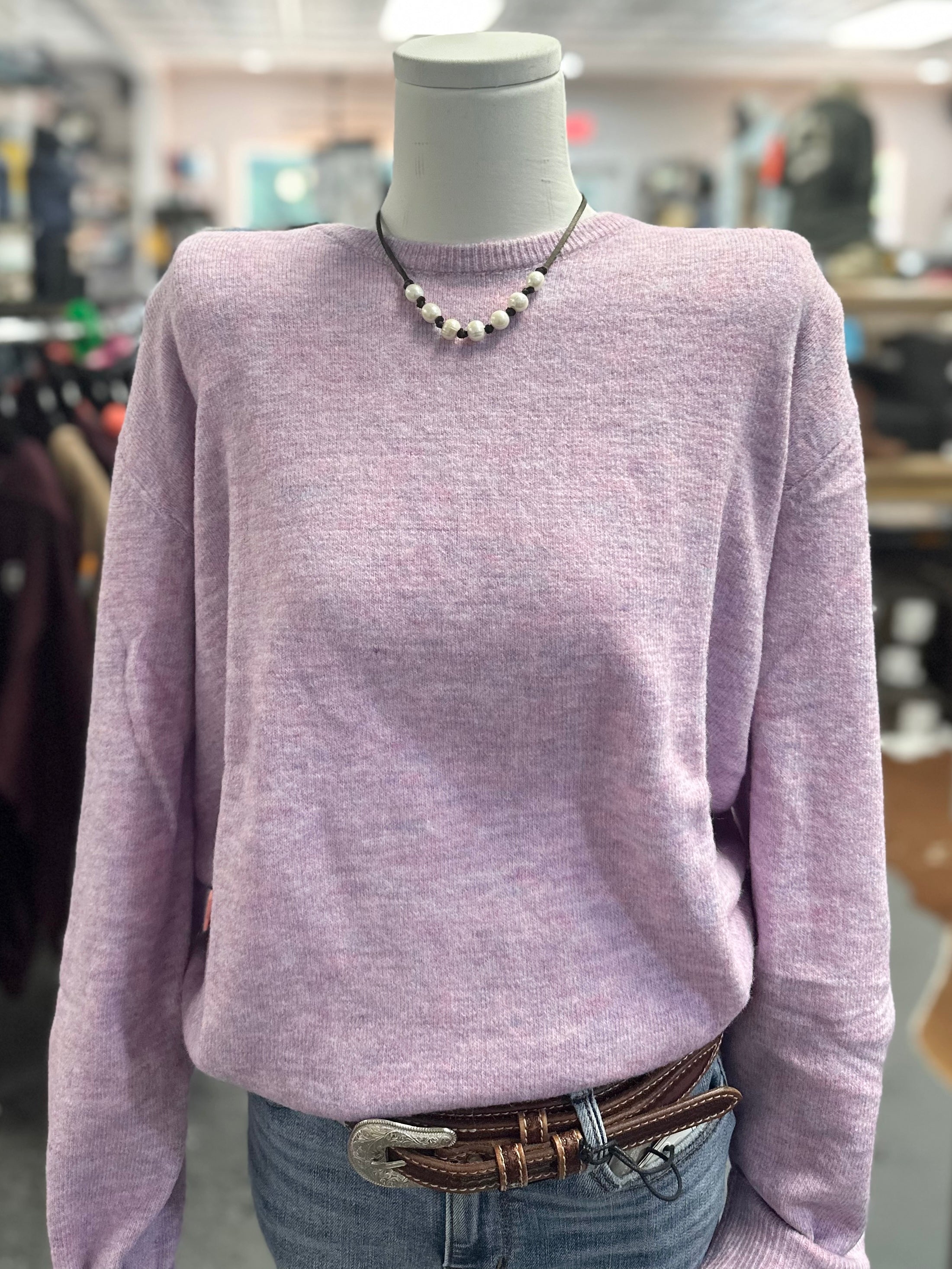 Expertly knit from luxurious materials, the PM6051 is the perfect addition to any wardrobe. With a round neck and soft feel, this long sweater in lilac offers both comfort and style. Elevate any outfit with this versatile and timeless piece.