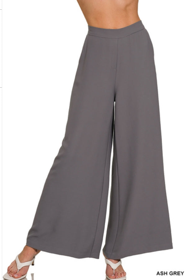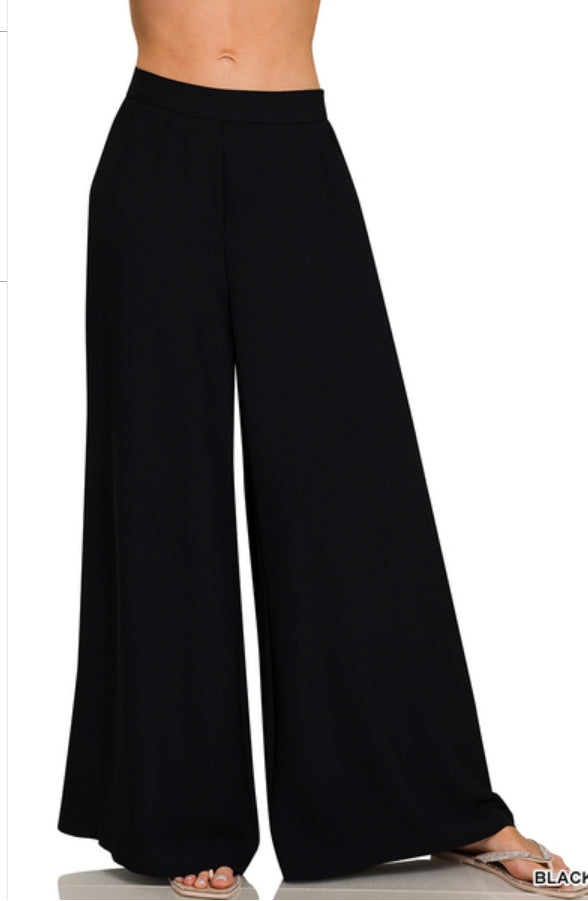 RELAXED FIT ELASTIC WAISTED WIDE LEG PANTS