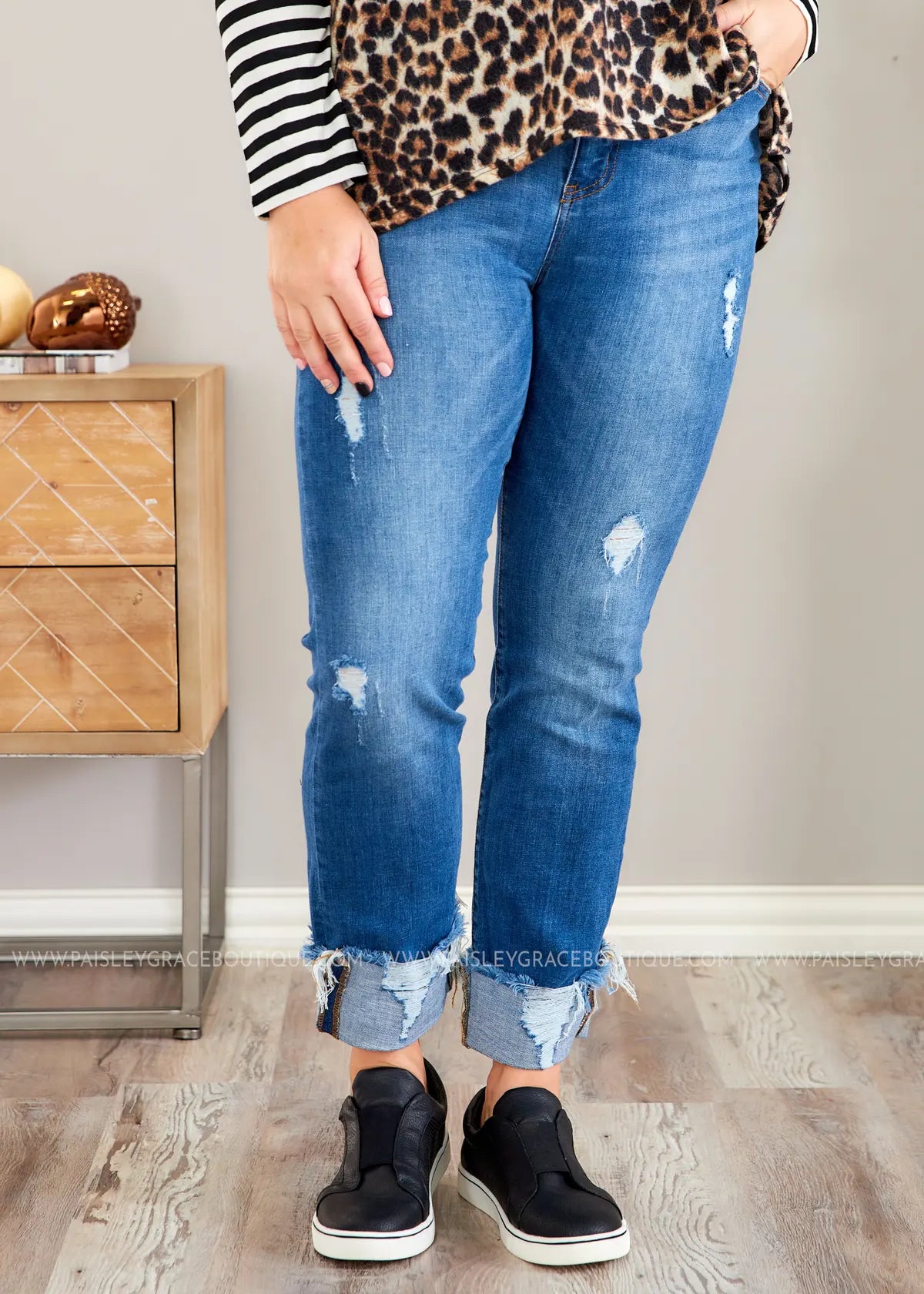 Mid-Rise Frayed Cuff Ankle Straight Jeans