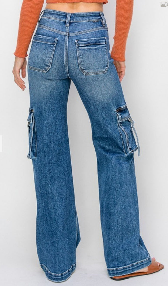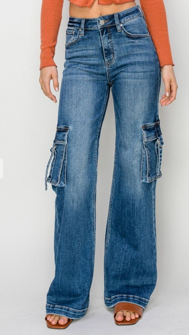 HIGH RISE SIDE CARGO POCKET WIDE JEANS