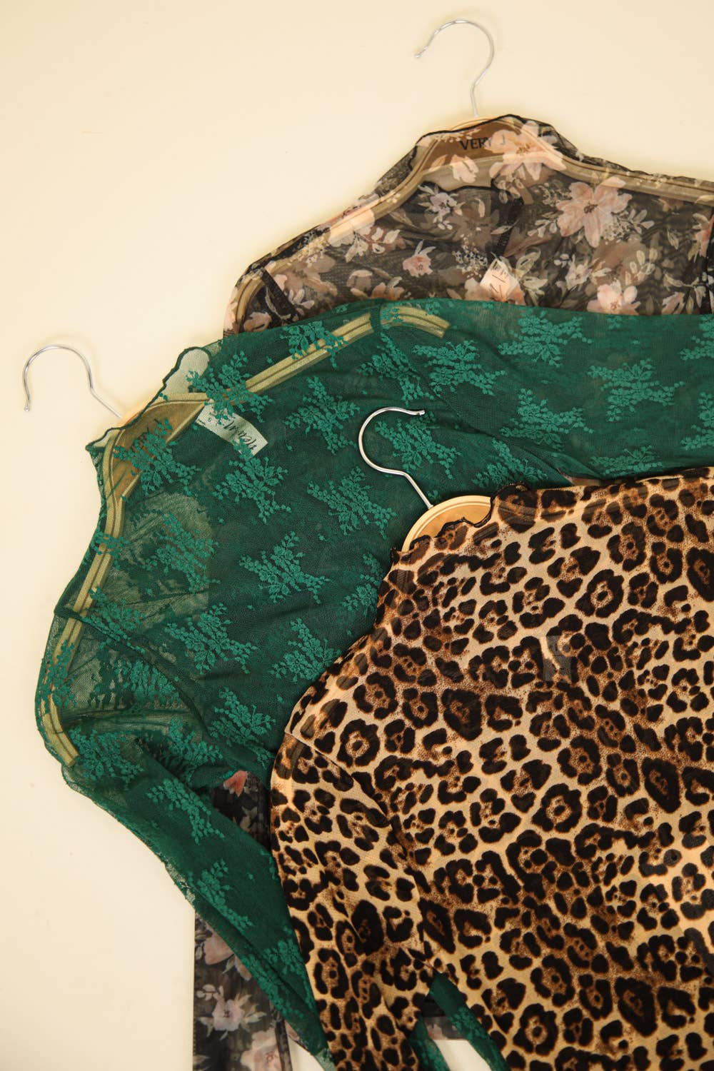 - High Neck Fitted Sheer Mesh Lace Knit Top - Sexy, Sophisticated Women Mesh Lace Blouse Top - Transitional Elegant Mesh Blouse Top - Early Autumn Long Sleeve Lace Top - Early Fall Holiday Top - Printed & Embroidered (Model height: 5"9", wearing a Small,