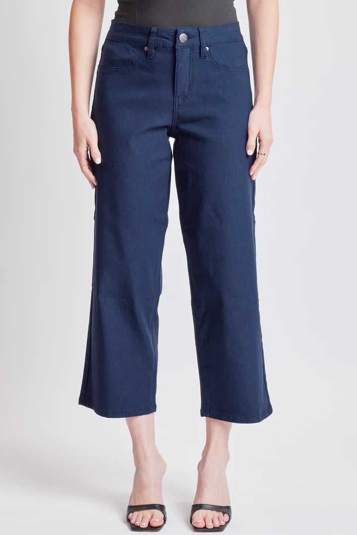 he perfect addition to your Spring wardrobe! Our Missy High-Rise Hyperstretch Wide Leg Cropped With Faux Front Pockets is not only super stretchy and flexible for all-day wear, but also lightweight and breathable for warmer days ahead! Featuring contouring technology, engineered to give you an incredible fit and hold while accentuating your curves. We've designed these in a cropped wide leg that hits in the middle of your calf. Pair with a floral blouse and heeled sandals for the ultimate Spring look, or wear them more casual with a front tucked tee and flats!